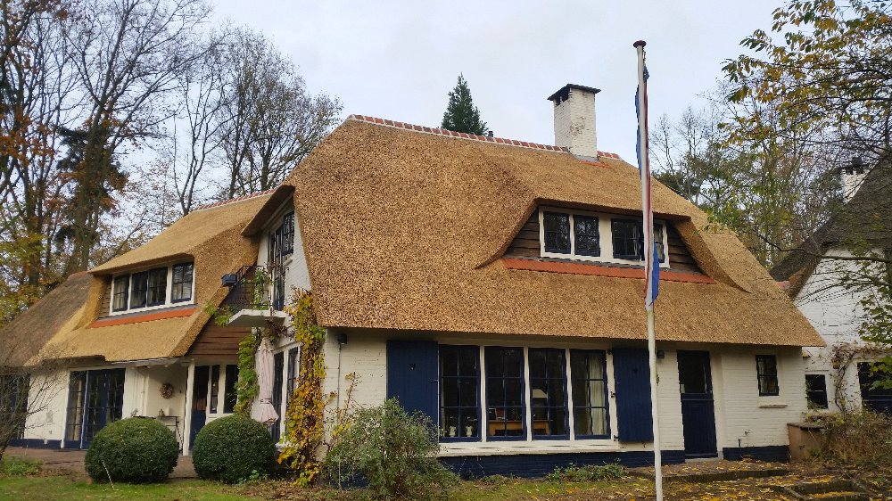 Onderstaande woning / villa in Hattem hebben onze rietdekkers voorzien van een nieuw rieten dak. Dit dak is deels voorzien van een dampdichte isolatiefolie SF19.
